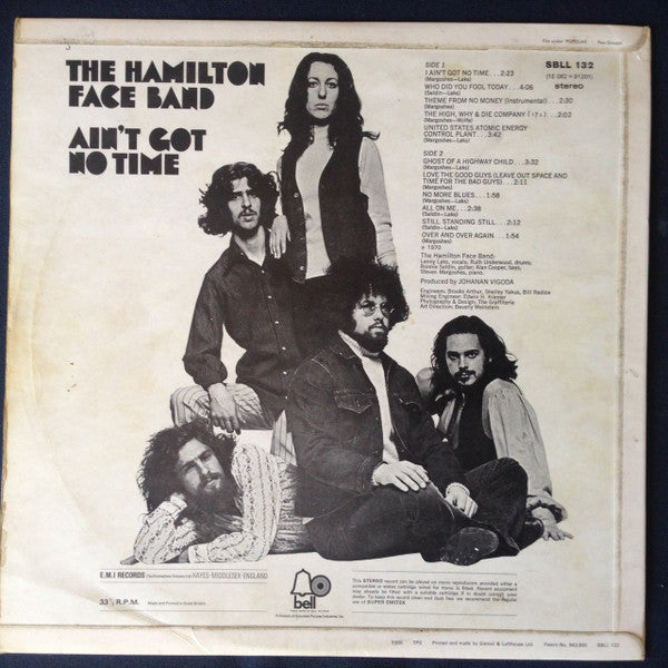 The Hamilton Face Band: Lenny Laks, vocals; Ruth Underwood, drums; Ronnie Seldin, guitar; Alan Cooper, bass; Steven Margoshes, piano. Produced by JOHANAN VIGODA Engineers: Brooke Arthur, Shelley Yakus, Bill Radice Mixing Engineer: Edwin H. Kramer Photography & Design: The Graffiteria Art Direction: Bevery Weinstein Flipback cover SBLL 132 A-1 G/SBLL 132 B-1 G 7005 TPS Printed and made by Garrod & Lofthouse Ltd Patent no. 943,895 SBLL 132