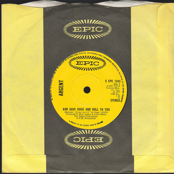 Vinyl, 45 RPM1, 7", God Gave Rock And Roll To You, Argent, 1973, UK