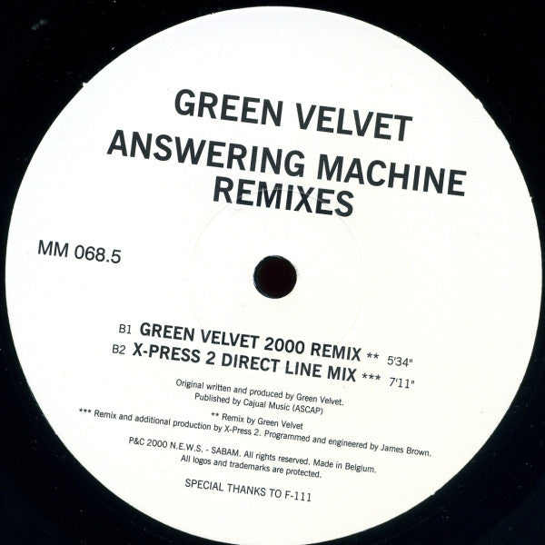 Vinyl, 33 ⅓ RPM1, 12", Answering Machine (Remixes), Green Velvet, 2000, Belgium