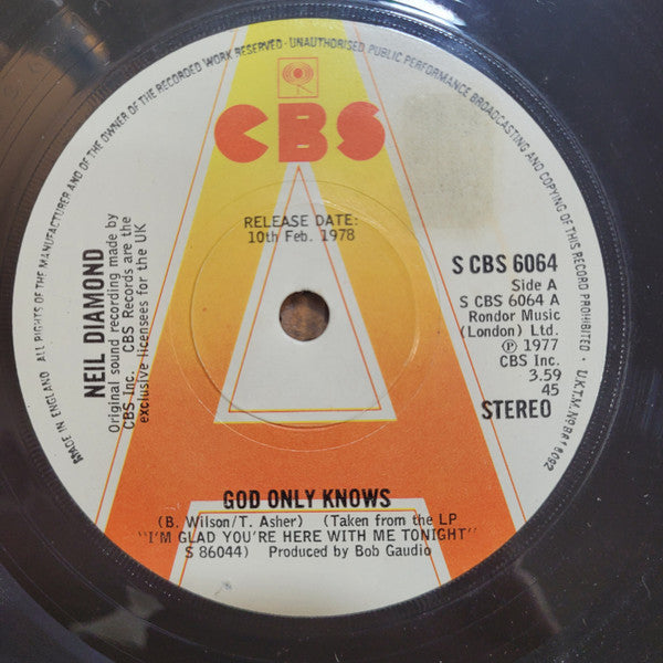 Vinyl, 45 RPM, Single1, 7", God Only Knows, Neil Diamond, 1978, UK, Promo