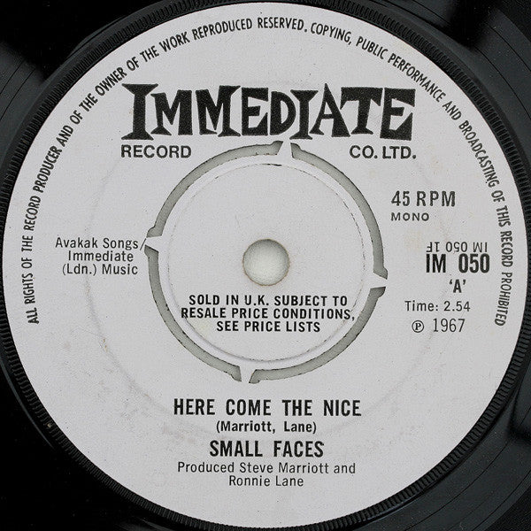Vinyl, 45 RPM, Single1, 7", Here Come The Nice, Small Faces, 1967, UK
